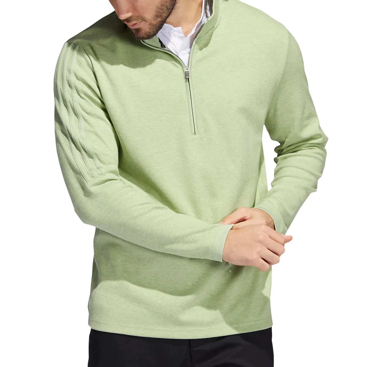 The Adidas Golf Men’s 3-Stripe Quarter-Zip Pullover features: